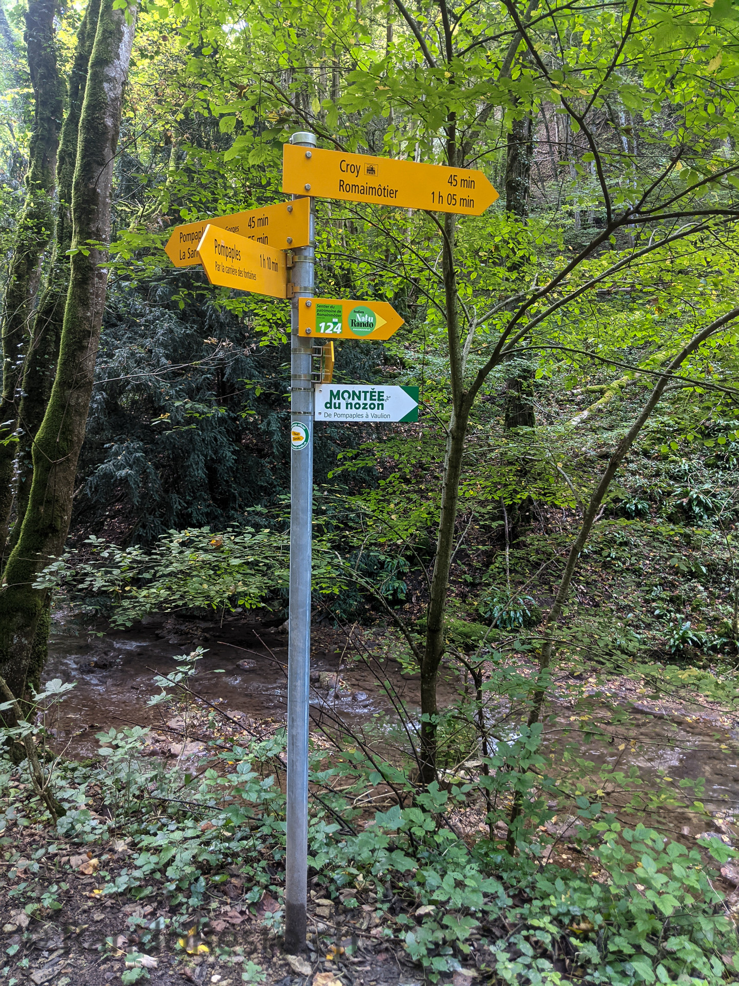 Longeant sa rive droite à l’aller, puis surplombant la combe de la rivière de l’autre côté au retour, cette balade à la fois méditative, naturaliste et riche en curiosités (pré)historiques permet d’apprécier pleinement tout le charme du vallon du Nozon.