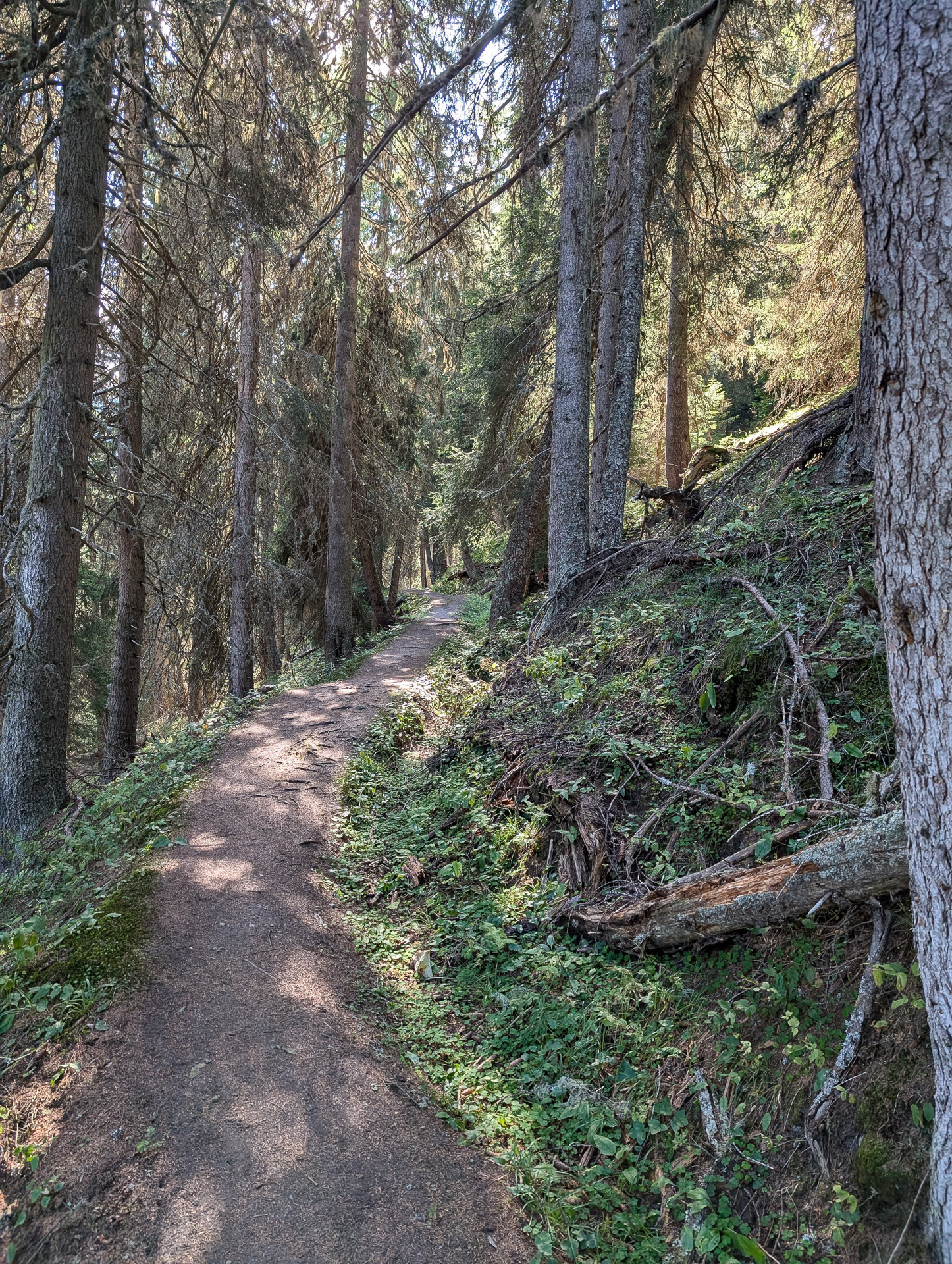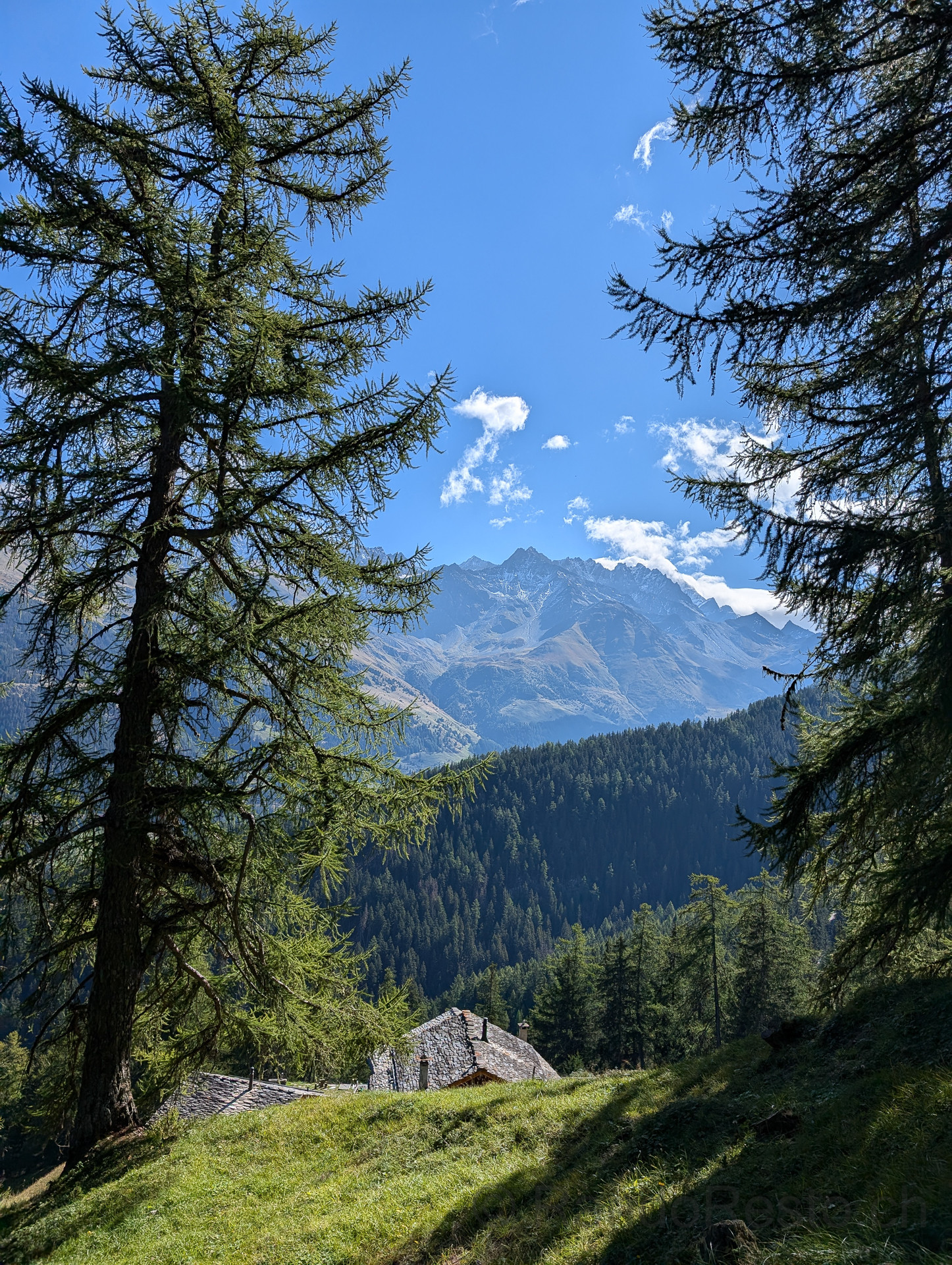 Suivre le chemin pédestre par le bisse de la Tour. La seule difficulté est au hameau du Dzâye: il faut monter juste après le dernier chalet (aucune indication, chemin pas bien marqué), ne pas continuer sur la route de montagne. Après une centaine de mètres, vous trouverez la conduite d'eau (tuyau noir) et le bisse de la Tour.