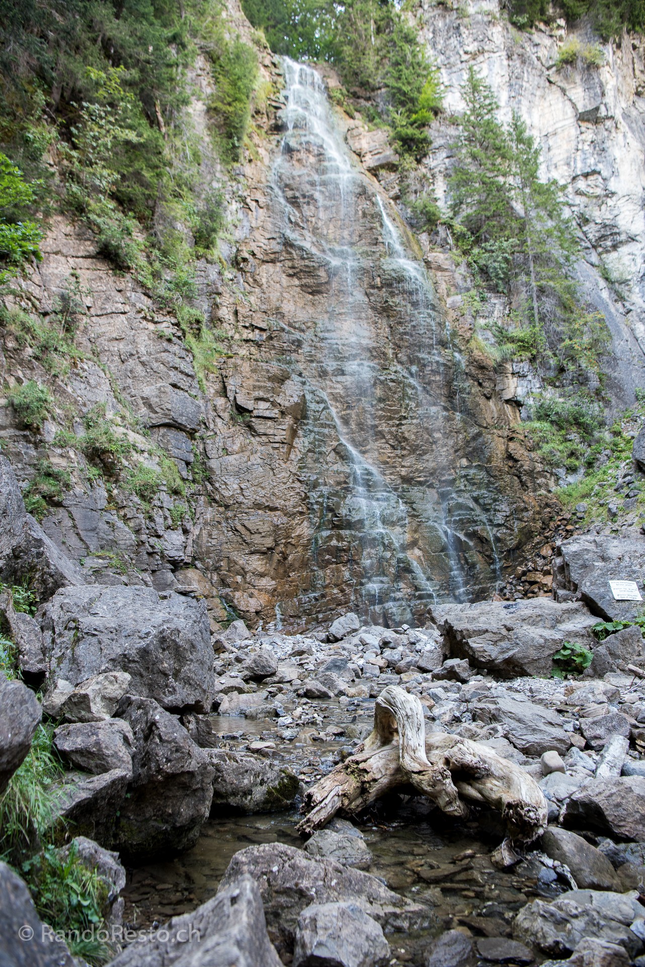 Juste après le pont, prendre la route de montagne direction Ricardets, Balisa. Montez cette route jusqu'au point 1217 où vous pouvez couper à travers champs pour rejoindre la buvette de Untere Recardets. Continuer la route sur la droite, direction La Balisa. Juste avant la Balisa, monter le chemin pédestre qui passe par dessus la colline en direction de Ober Recardets (buvette). Redescendre par la route de montagne jusque vers la buvette de Untere Recardets, puis continuer la descente pratiquement jusqu'en bas et prenez le sentier qui mène à la cascade (5 min): la fraicheur de la cascade fera du bien après la randonnée! Retour ensuite au parking.